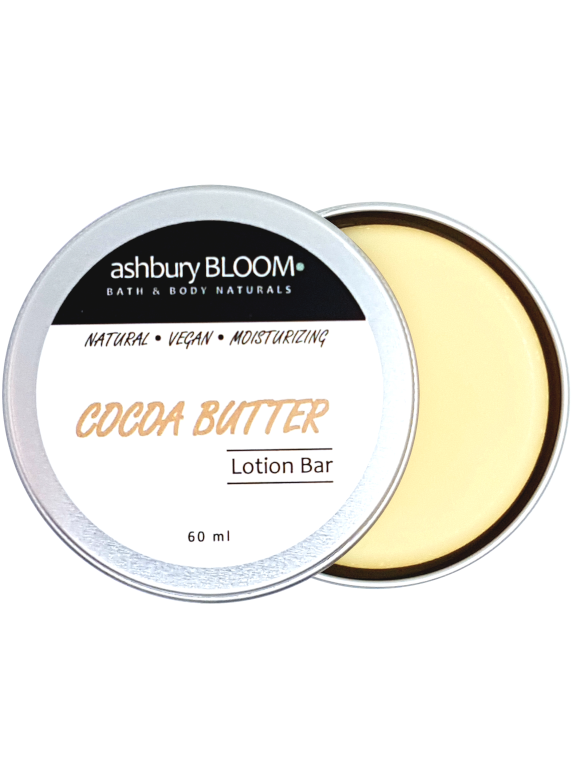 LOTION BARS – Moisturize at home or on the go with full-body, vegan Cocoa Butter Lotion Bars! Packed with raw ingredients containing natural antioxidants which are nourishing for the skin. Formulated without the greasy after feel. Perfect for soothing dry cuticles, hands, elbows, knees, and feet. Packaged in a recyclable aluminum tin and convenient for travel.